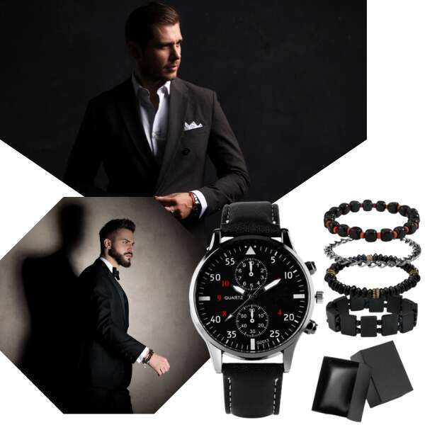 Lépjen be az időtlen elegancia és a végtelen kombinációk világába ezzel a modern órával és négy karkötővel.